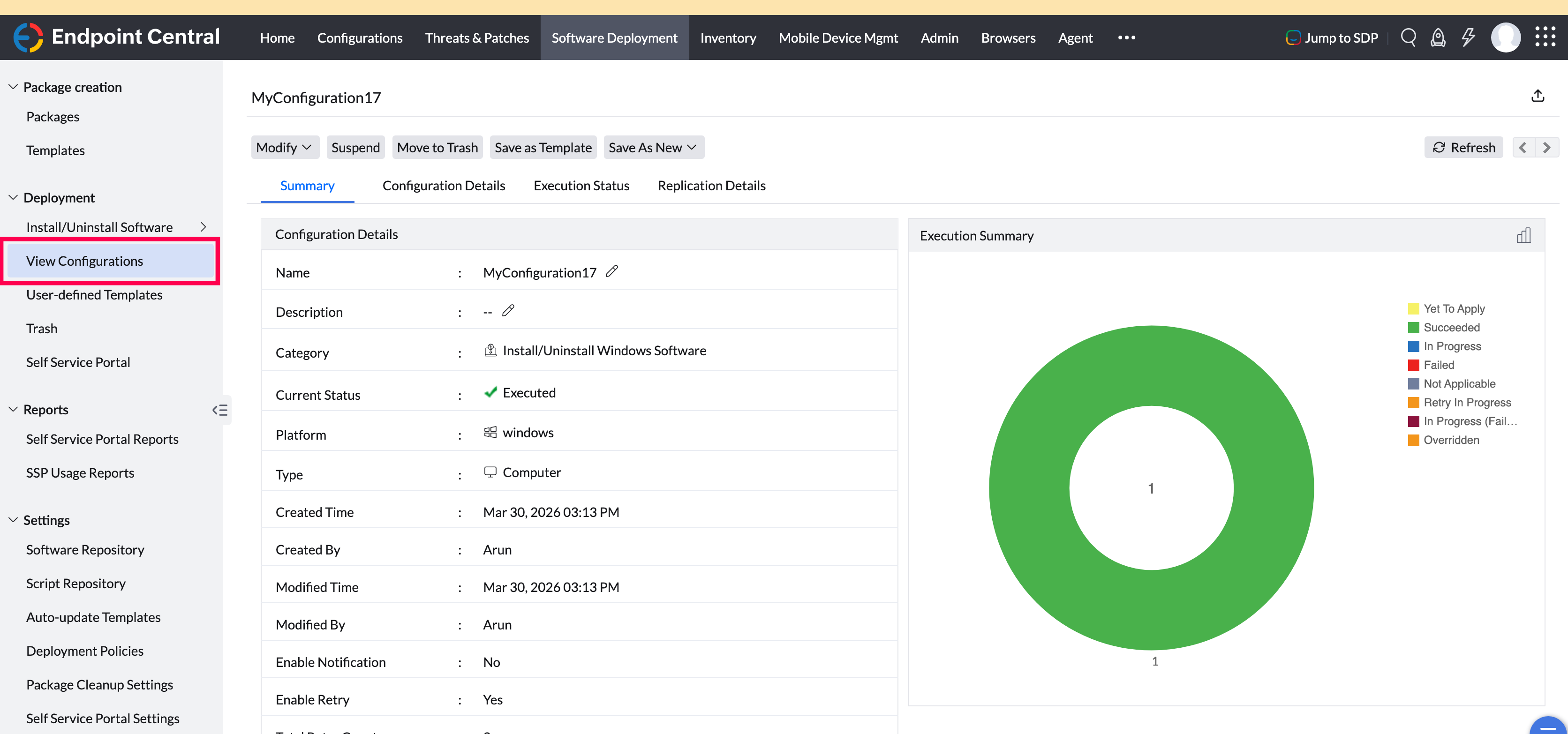 Finally, navigate to the View Configurations option under the Deployment section. Here, you can check the status of the deployment, as shown in the screenshot below :